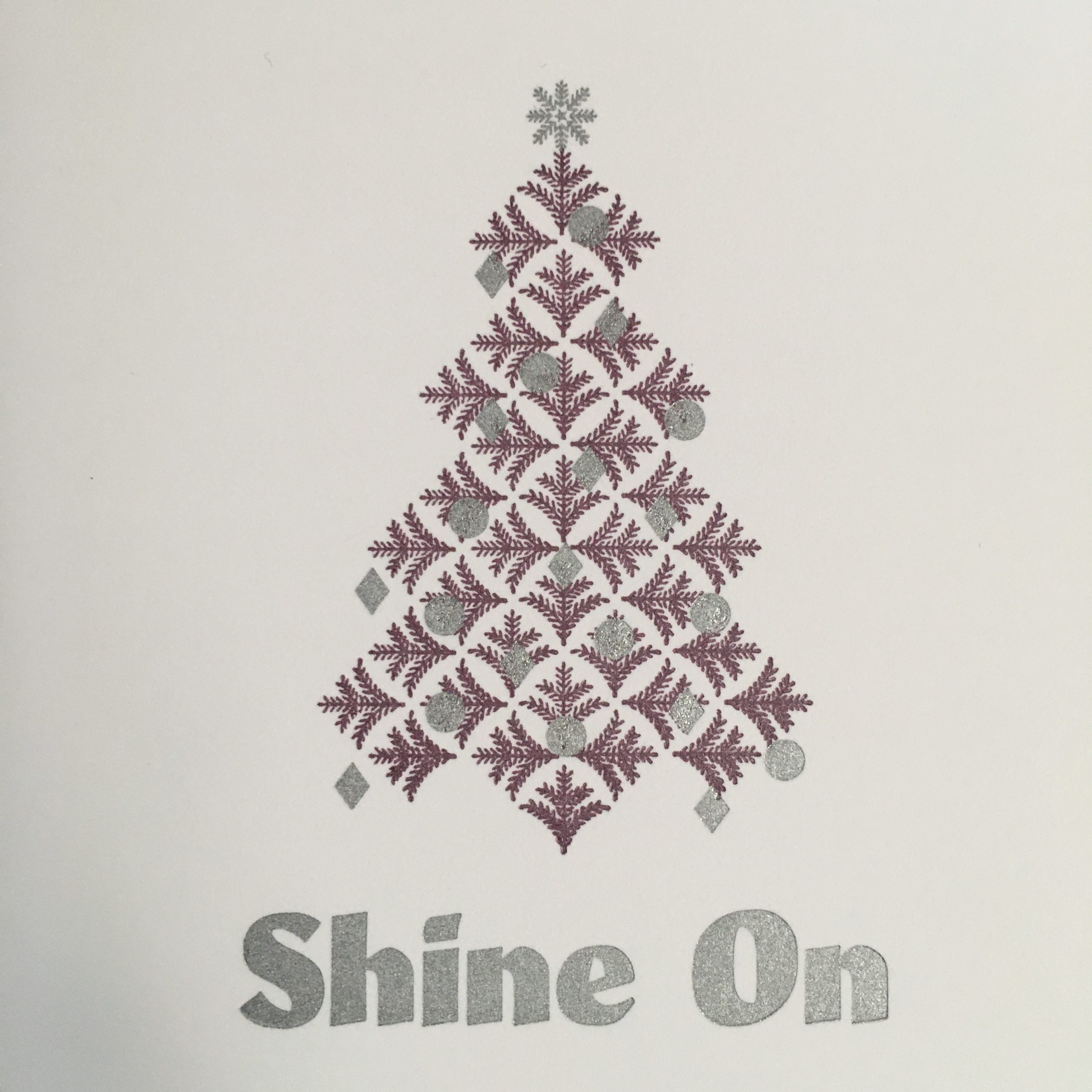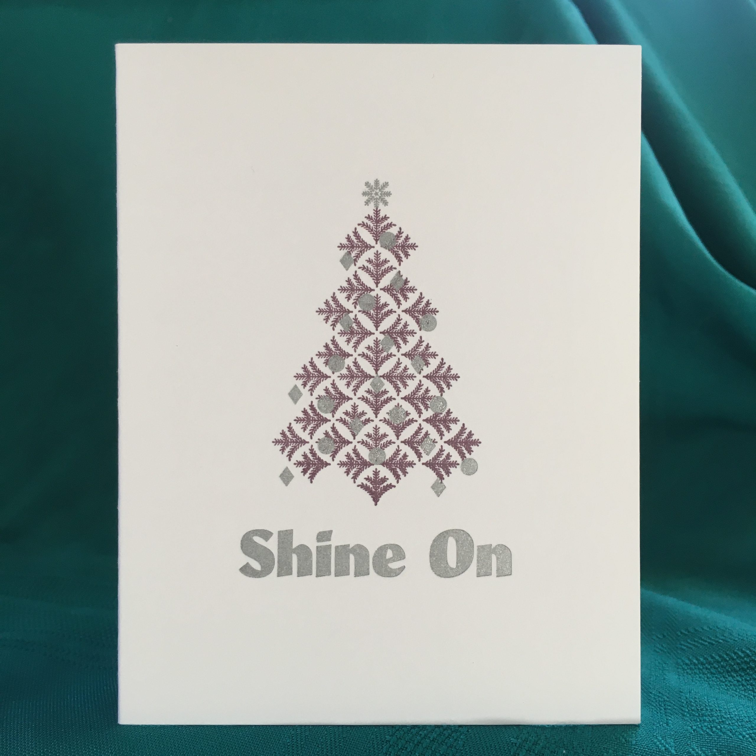 Hand-printed in Madison, WI, with metallic pink and silver ink on heavyweight white Flurry cotton card stock, using hand-composed metal type and type ornaments. Includes matching envelope.